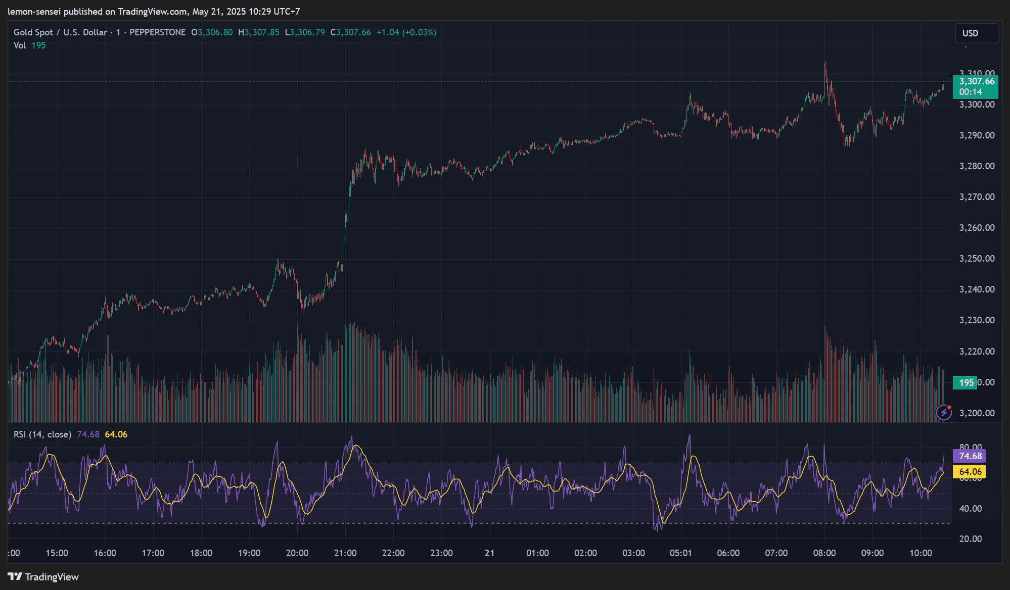 Asset: Gold / U.S. Dollar (XAUUSD)Date: May 21, 2025 1. Executive Summary Current analysis indicates that gold (XAU/USD) presents a viable intraday trading opportunity. The asset is currently trading around $3,307-$3,308, showing moderate volatility ...