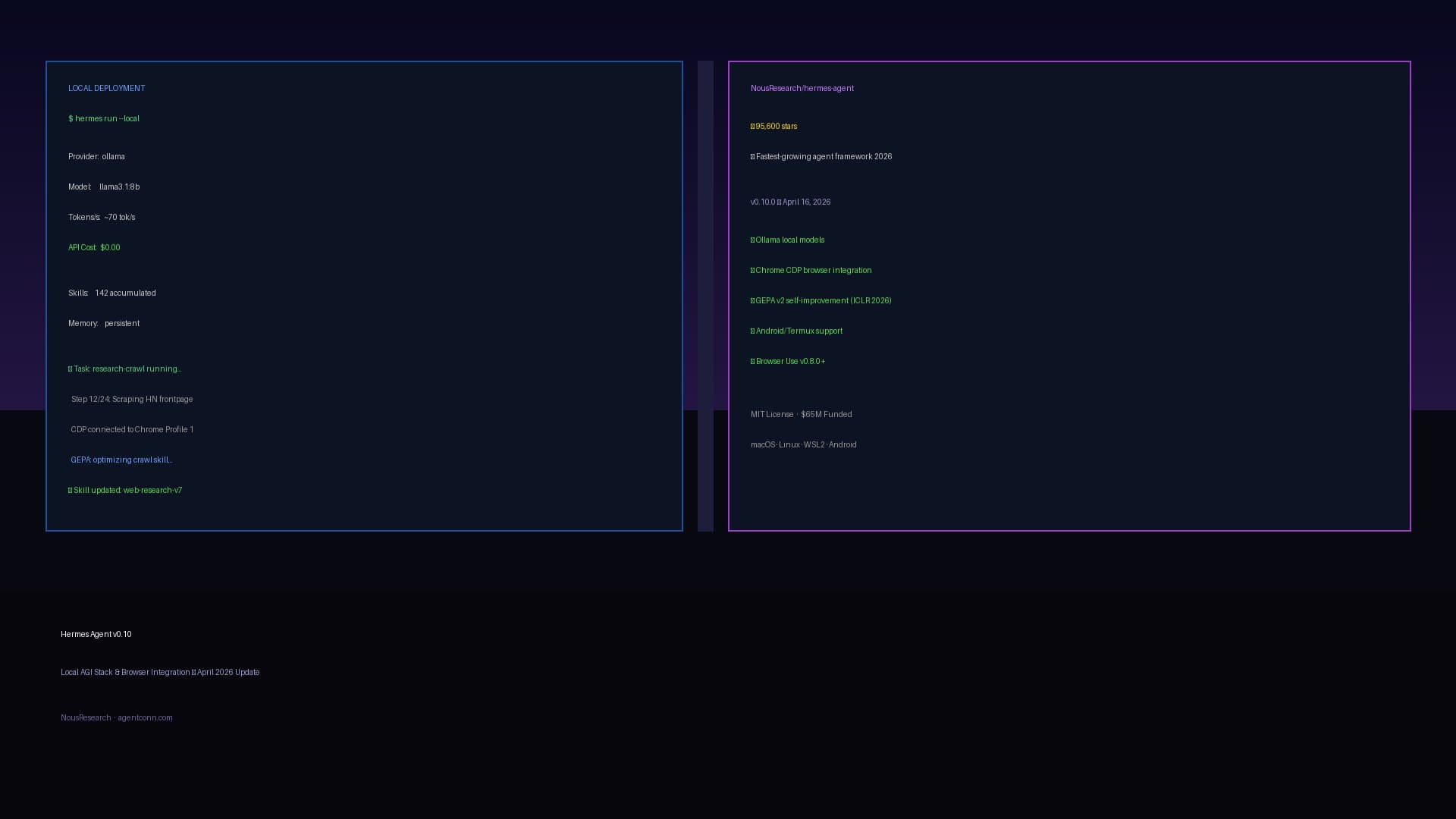 Join discussion3d ago · 2 min read · 📖 Read the full version with diagrams and embedded sources on AgentConn → In seven weeks, NousResearch/hermes-agent went from zero to 95,600 GitHub stars — the fastest star velocity of any agent framework in 2026. The question isn't whether Hermes ...