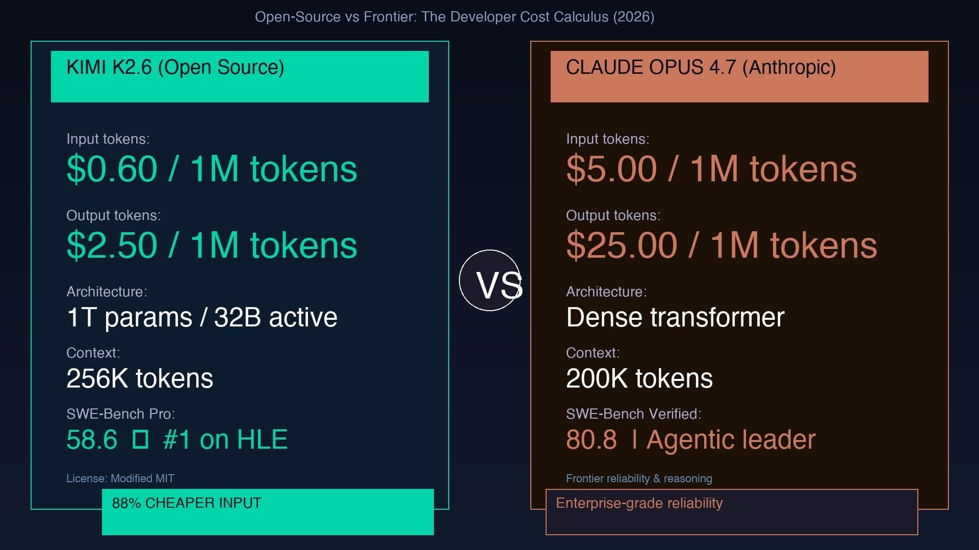 3d ago · 8 min read · Kimi K2.6 vs Claude Opus 4.7: The 88% Cost Advantage When Clement Delangue, the CEO of Hugging Face, called Kimi K2.6 a standout open-source model on the day of its release, the AI procurement conversation shifted. Not because a Chinese model was com...